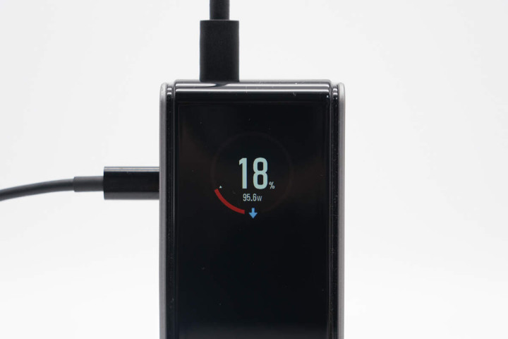 也能显示移动电源剩余电量、自充电功率以及预计充满所需时长,自充电设计绿色闪电标识进行提示。