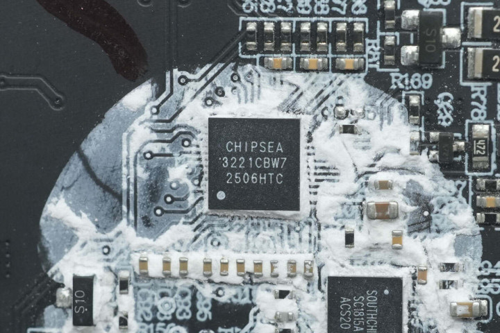 拆掉电感,底部四颗同步升降压开关管来自长晶科技,型号CJAC2R5SN04C,NMOS管,耐压40V,导阻2mΩ,采用PDFNWB5*6-8L封装。