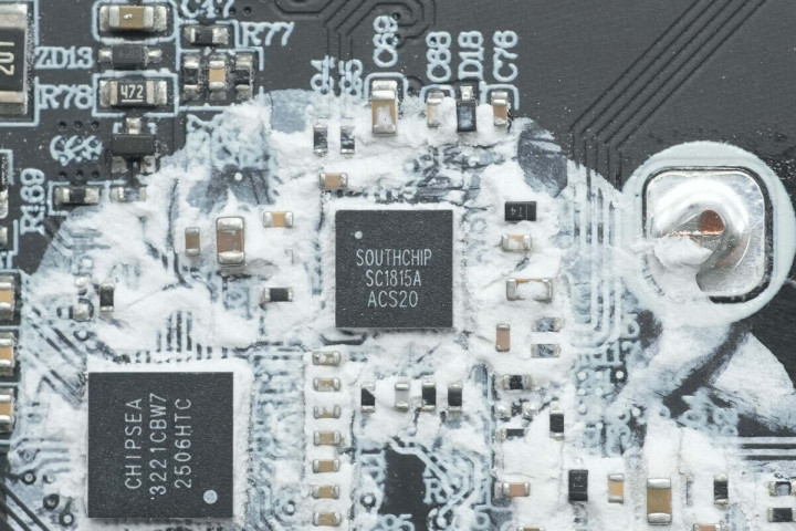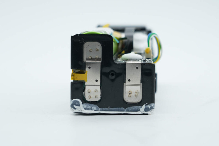 此外采用南芯科技SC1815A升降压控制器搭配芯海科技CPW3221协议芯片方案实现2C1A接口快充控制。芯海科技MCU搭配复旦微存储器为丰富屏显功能提供支持,德州仪器降压方案进行供电。壳体上贴有石墨散热贴纸,器件、电芯打胶加固,做工可靠。