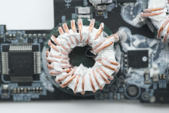 搭配的升降压电感下方也设有青稞绝缘纸。