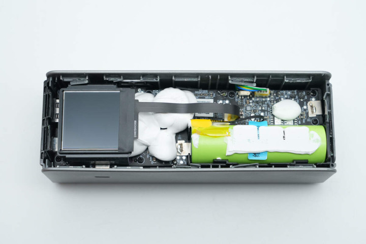 充电头网通过拆解了解到,移动电源同样是采用了五颗长虹三杰INR21700-5000锂电池组成电池组,并配备创芯微CM1351-BAT锂电保护方案以及热敏电阻进行温度监控,国家CCC认证加持,25000mAh容量提供强力续航同时保证安全可靠性。