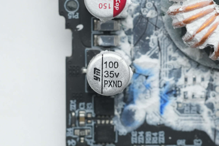 滤波固态电容来自柏瑞凯,规格为35V150μF。