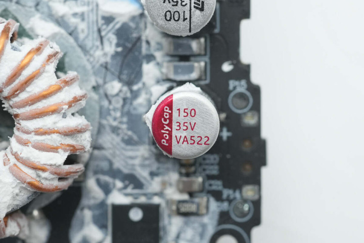 电池端滤波固态电容来自永铭,规格均为35V100μF。